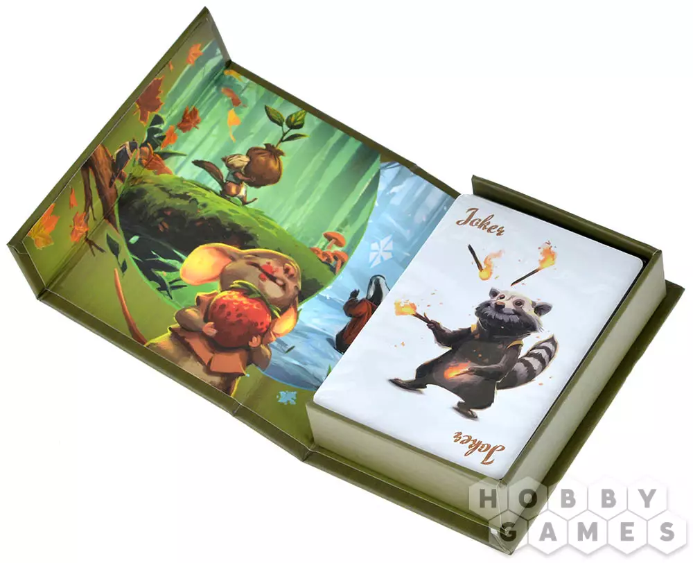 Игральные карты вдохновлены удивительной вселенной Эверделла. Встречайте свои любимых персонажей и уже такие знакомые места от карточки к карточке. Играйте в кругу семьи или друзей, а великолепное качество исполнения и живописный дизайн добавят вам ещё больше радости и восторга.