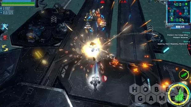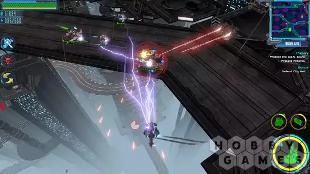 Тяжело вооруженные дроны, запрограмированные разрушать, рвутся к материнскому кораблю «Антарес». Размещайте защитные сооружения в оптимальных местах и управляйте кораблем-защитником «Молотоглав». На нём установлены такие оружейные системы, как «Тесла-пушка», бьющая по нескольким целям, гелиевый плазмомет «Зажигатель» и смертоносный «Поражатель».