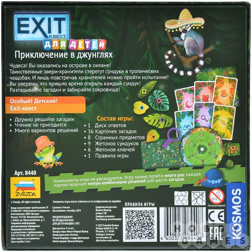 Серия "EXIT-Квестов" позволит вам, не выходя из дома, окунуться в мир квестов в реальности – невероятно популярного развлечения среди людей разных возрастов. А теперь поломать голову над задачкой, хорошенько при этом повеселившись, смогут и самые юные любители приключений и экстрима. Ваша задача – решить все загадки и успешно выбраться из квеста! Самое время приступать!