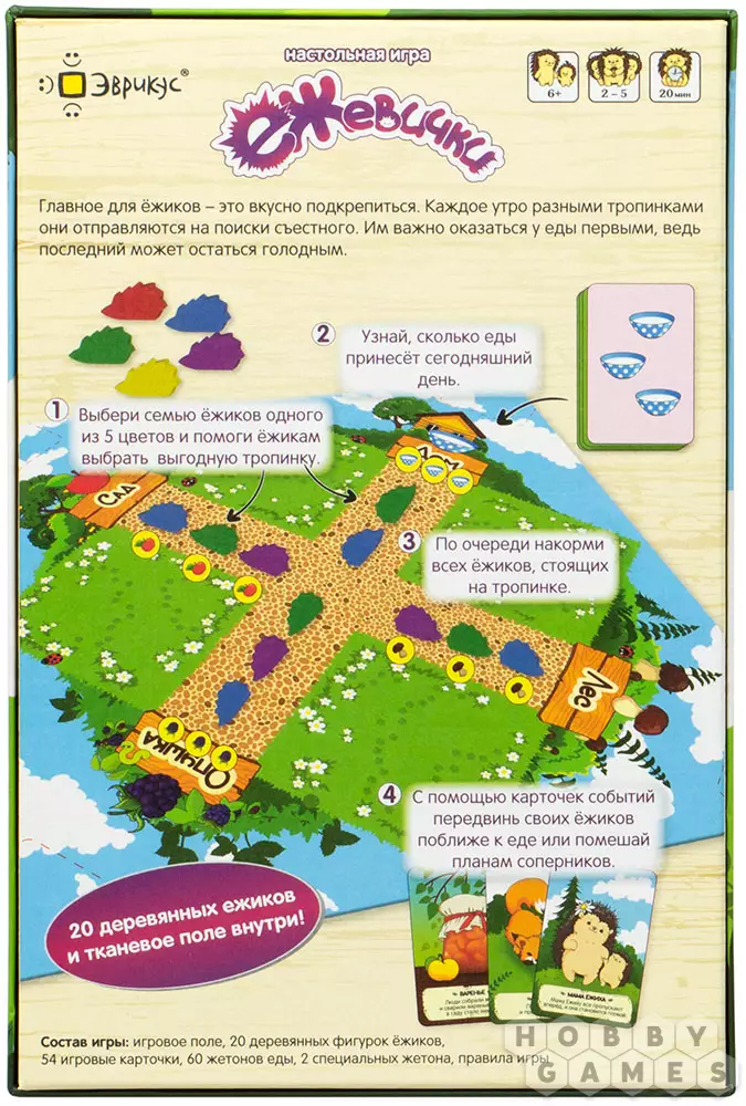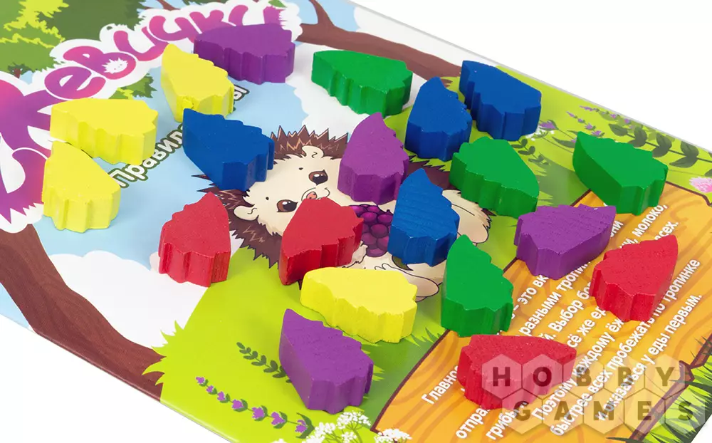В семейной настольной игре "Ежевички" игрокам нужно помочь ёжикам опередить конкурентов в гонке за пропитанием, выбрав самую короткую тропку. Игра отличается приятным художественным оформлением с мультяшной рисовкой светлых оттенков – как в детских книжках. "Ежевички" – это отличный способ занять чем-то детей или провести время вместе с ними.