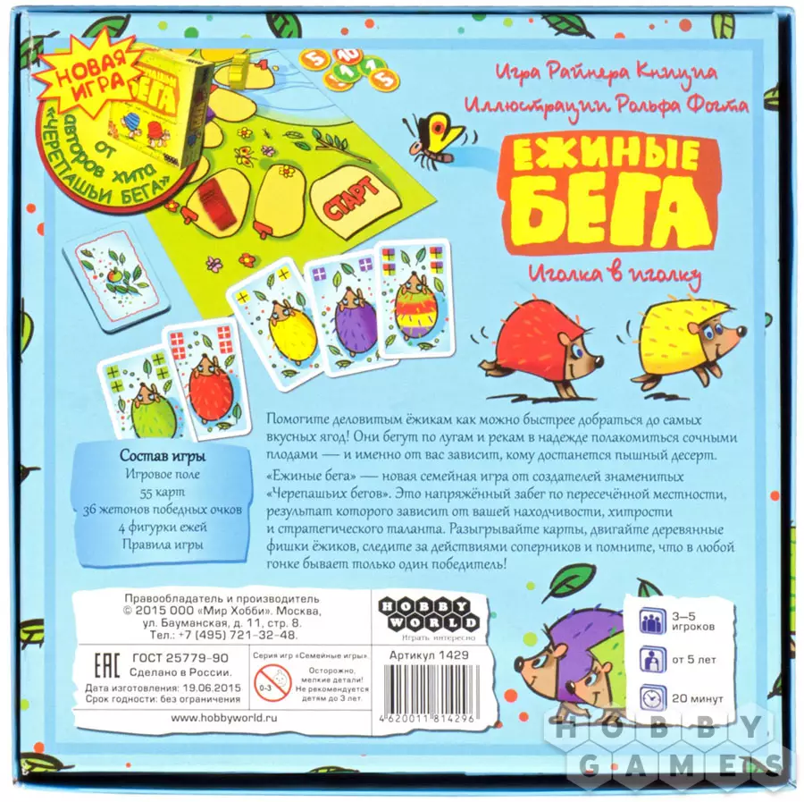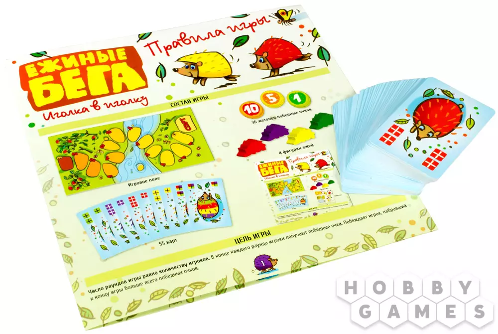 Веселые ежата отправляются на прогулку! Но кто же проведёт их по лесным тропкам через речку? "Ежиные бега" – это новая детская настольная игра от создателей популярных "Черепашьих бегов". Только теперь ёжики решили посоревноваться в своей скорости и сноровке. В отличии от черепашек, они не забираются друг другу на спинки, а играют честно, как настоящие джентльмены. Ёжики уже на старте и ждут ваших указаний. Вы готовы?