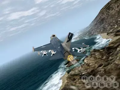 - Полностью интерактивная трёхмерная виртуальная кабина, отражающая текущее состояние F-16