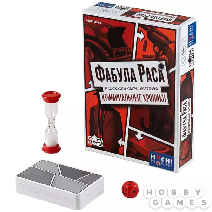 В карточной настольной игре "Фабула Раса: Криминальные хроники" участники по очереди выкладывают карты с изображениями и рассказывают свою версию случившегося. Чтобы правильно изложить историю, необходимо запомнить все карты, выложенные другими игроками. В случае успеха вы получаете карту в награду. Побеждает тот, кто первым соберёт определённое количество карт награды.
