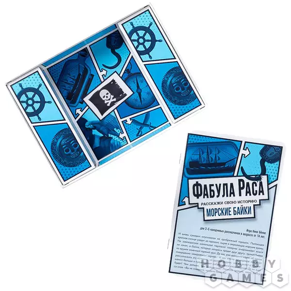 В карточной настольной игре "Фабула Раса: Морские байки" участники по очереди выкладывают карты с изображениями и рассказывают о своём морском приключении. Чтобы правильно изложить историю, необходимо запомнить все карты, выложенные другими игроками. В случае успеха вы получаете карту в награду. Побеждает тот, кто первым соберёт определённое количество карт награды.