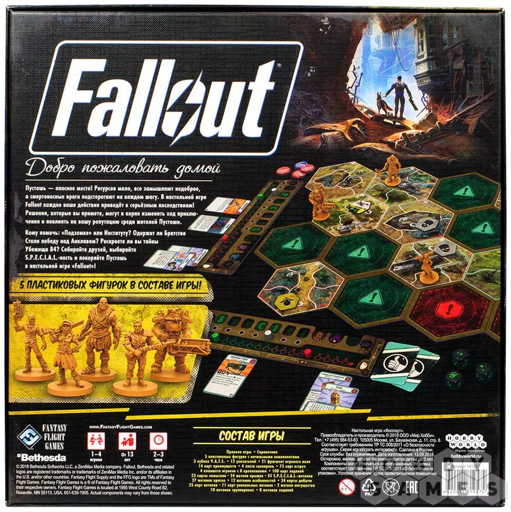 "Fallout. Настольная игра" – приключенческая игра в сеттинге ядерного постапокалипсиса. В этой настольной игре 1-4 игрокам предстоит выбраться в открытый мир и почувствовать себя настоящими странниками. Игроки будут путешествовать по карте Пустошей, выполнять задания, копить драгоценные крышки от Нюка-Колы, получать опыт и прокачивать свои навыки, находить новое снаряжение и спутников, завоёвывать авторитет и влияние. В начале партии вашей основной задачей будет простое выживание, но чем дальше, тем комплекснее станет ваше путешествие – возможно, именно вы измените этот мир навсегда!