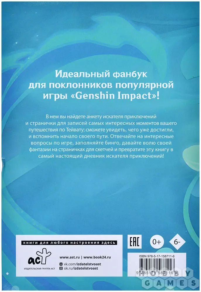 Волшебный мир Тейвата ждёт своих героев! Внутри этой книги вы найдёте анкету искателя приключений, чтобы поделиться своими характеристиками и познакомиться с другими героями, которые с радостью исследуют Тейват вместе с вами. Перелистывайте страницу за страницей, чтобы вспомнить самые захватывающие моменты своего путешествия – от первых шагов до самых эпических сражений.