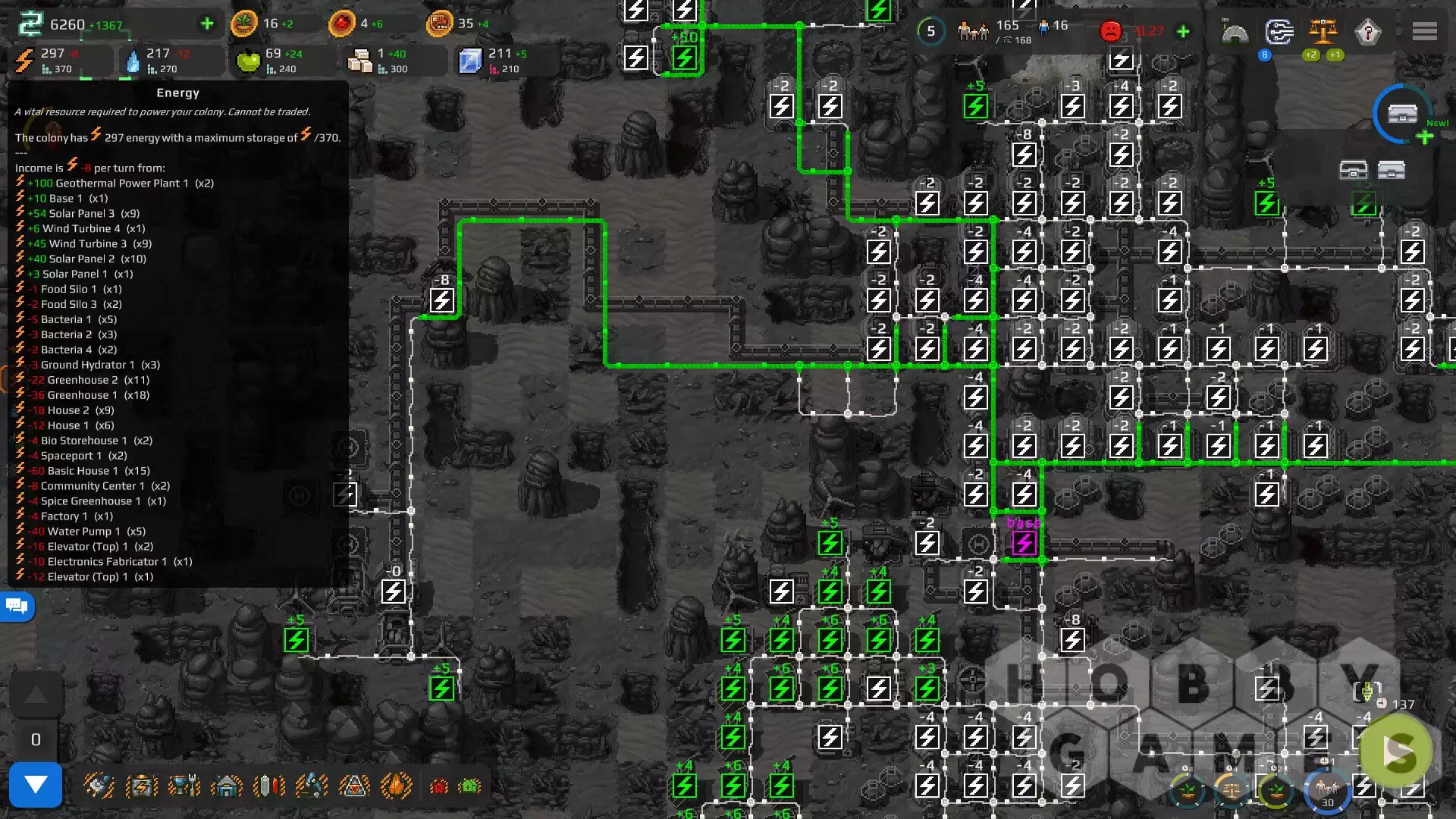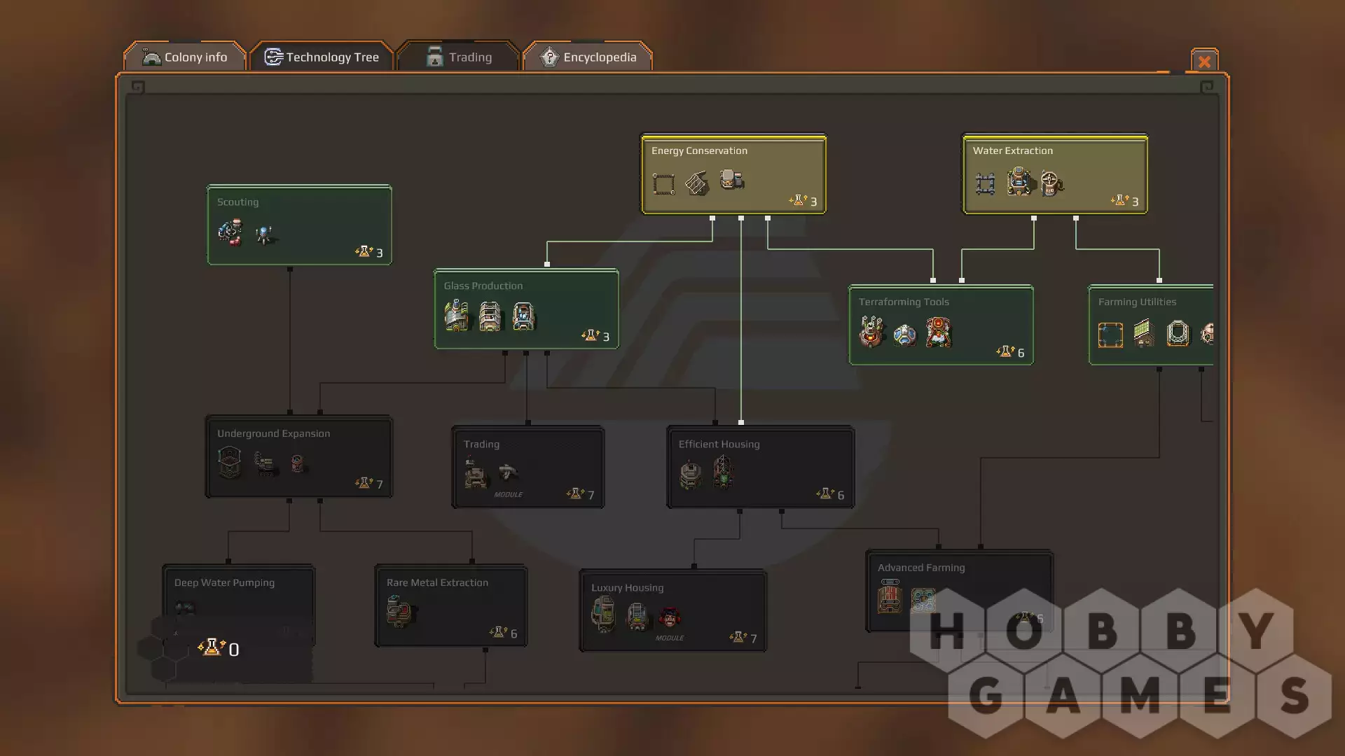 Используйте ход, чтобы выбрать набор для терраформирования и изменить ландшафт в интересах вашей колонии. Нужен источник воды? Поместите плитку с каплями воды в каньон и наблюдайте, как окружающая равнина становится плодородной. Не хватает ресурсов? Создавайте новые месторождения полезных ископаемых или просто расширяйте уже существующие.