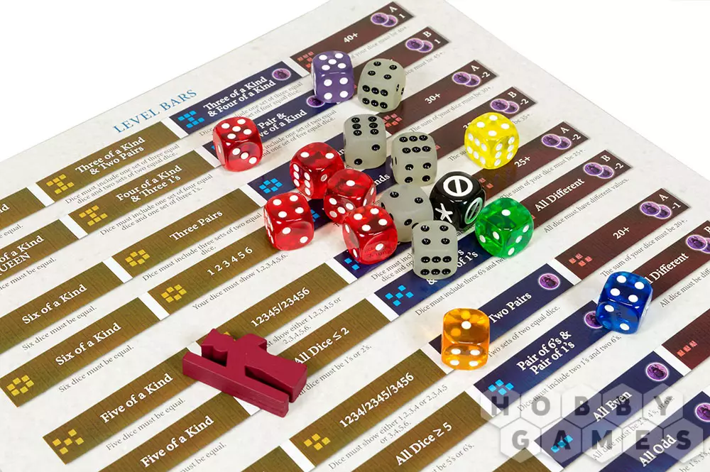 В игре более чем 50 различных персонажей, каждый из которых обладает уникальной способностью. В каждой игре используется только 21 из этих персонажей, что увеличивает разнообразие и ценность повторных игр. Вам доступны шесть различных пользовательских кубиков со специальными способностями, специальные кубики немедленного действия и бонусные жетоны, которые используются для настройки бросков игроков. Такое обилие и разнообразие компонентов делает игровой процесс поистине запоминающимся.