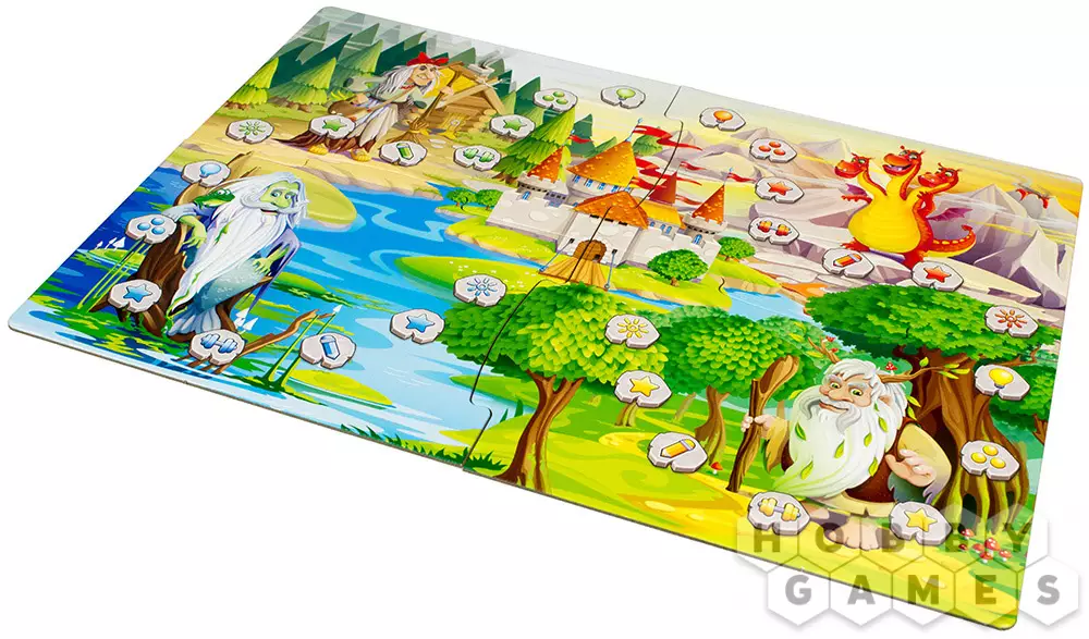 Посередине игрового поля находится замок трёх богатырей, а вокруг него – 4 волшебные страны, в которых проживают различные сказочные злодеи, к счастью, совсем не страшные. Задача игроков – пройти по кругу всё королевство, выполняя задания вышеупомянутых персонажей.