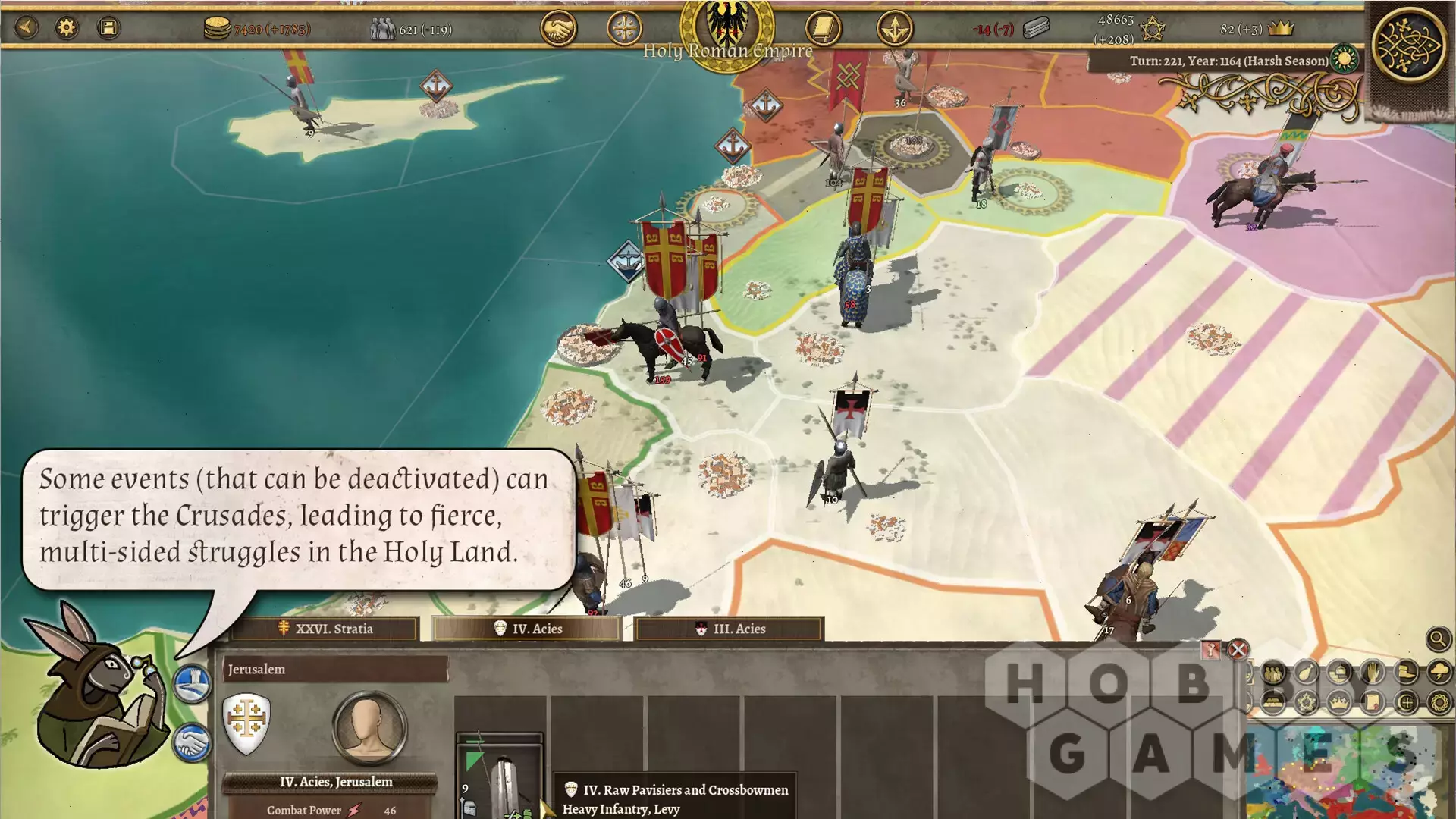 Наличие соседа другой религии создаст напряженность, а иногда и войны, даже для толерантных правителей. Когда дисбаланс станет слишком сильным, дипломатия отойдет на второй план и будет объявлена война. Потеряйте слишком много священных городов и наблюдайте, как формируется крестовый поход или джихад.