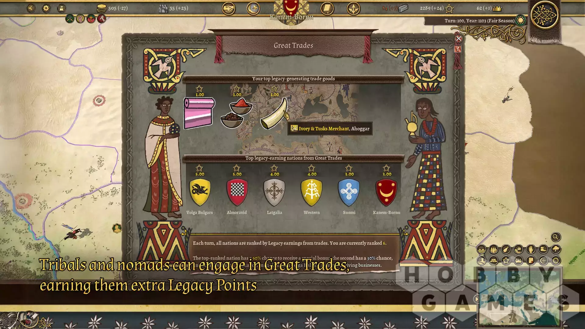 Основное внимание DLC к кочевым и племенным нациям привносит две революционные механики для накопления очков наследия. Будь то через новые функции кампаний «Великие Торговли» или «Война», каждая нация зарабатывает престиж и влияние по-разному, создавая уникальный игровой подход. Особые здания, военные цели и другие эксклюзивные особенности придают этим нациям свежее, сложное ощущение по сравнению с более устоявшимися державами.