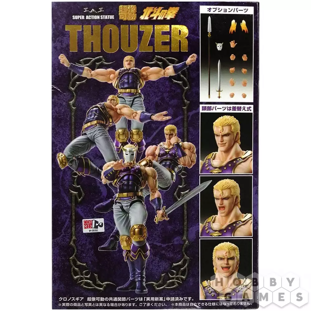 В наборе к фигурке идут характерные для персонажа аксессуары и сменные детали рук. Вы сможете придать фигурке различные эмоции и дать в руки копьё или меч. Также в наборе есть специальная маска Саузера и стенд, чтобы поставить фигурку в понравившуюся позу.