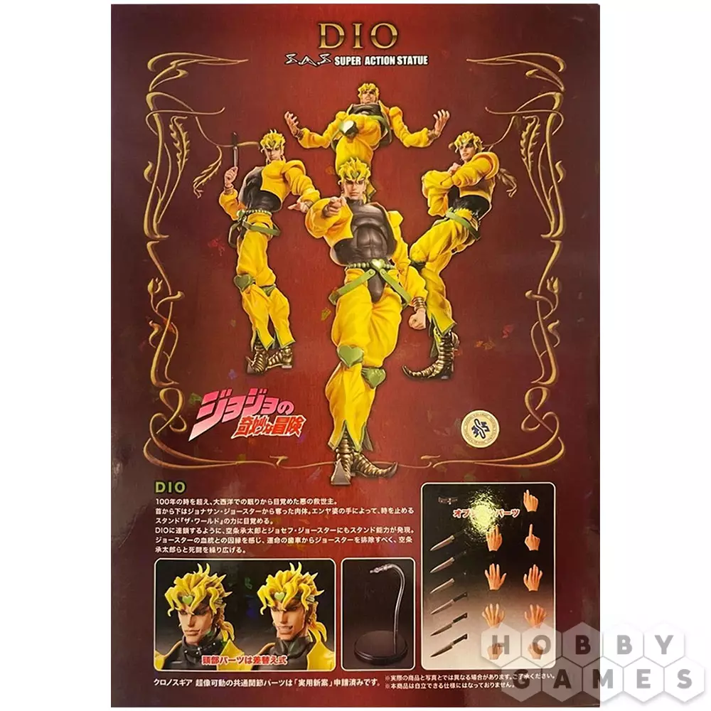 Дио мастерски обращается с оружием, поэтому помимо фигурки, в наборе идут сменные детали рук и множество клинков, заточенных к битве. Сама фигурка подвижная, поэтому можно поставить Дио в совершенно любую позу.