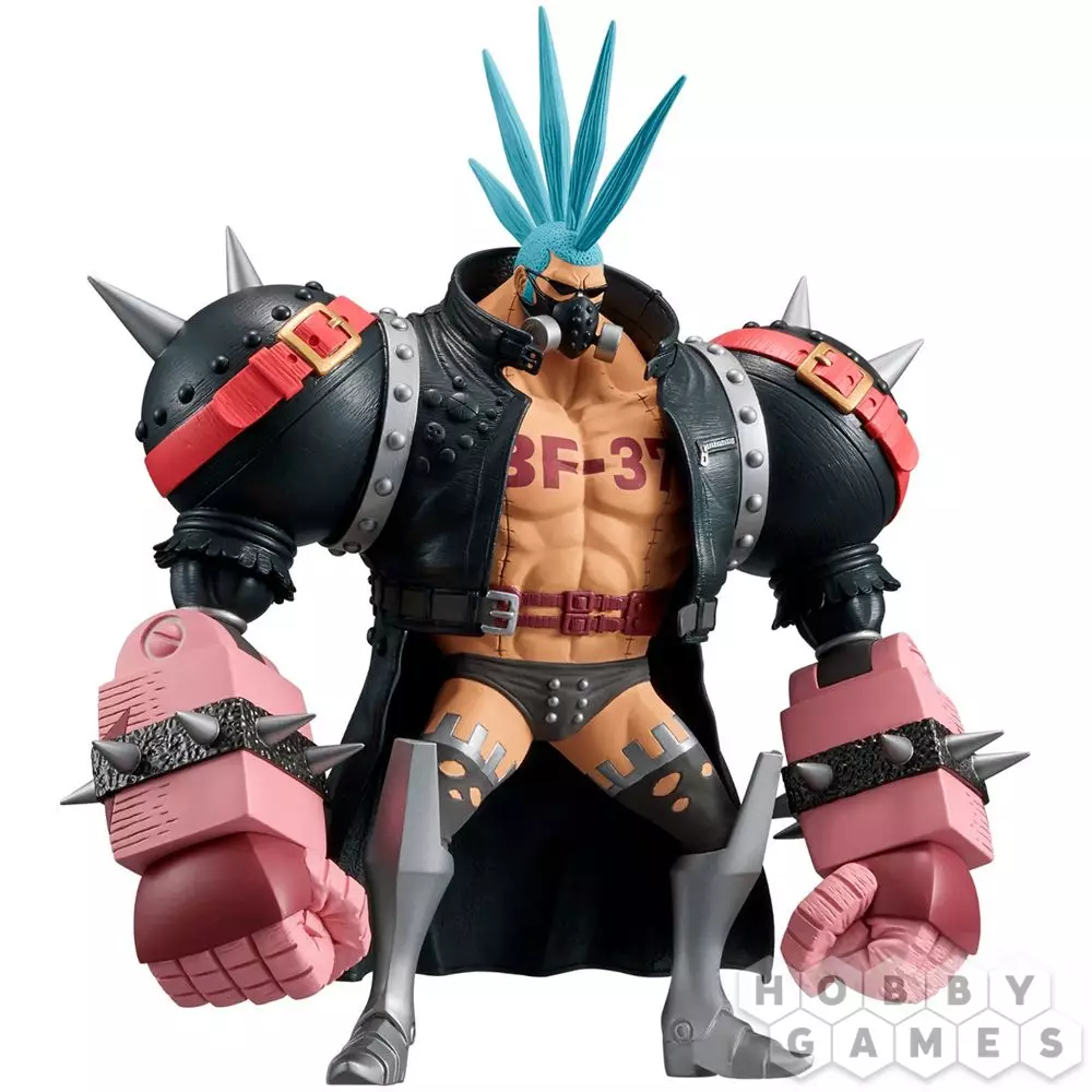 Огромный киборг устрашающего вида с голубым ирокезом и татуировкой на груди – с таким лучше не встречаться в тёмном переулке. Лучше поставить на полочку его фигурку высотой 15 см и пересмотреть несколько серий аниме "Ван Пис" с участием вышеобсуждаемого Фрэнки.