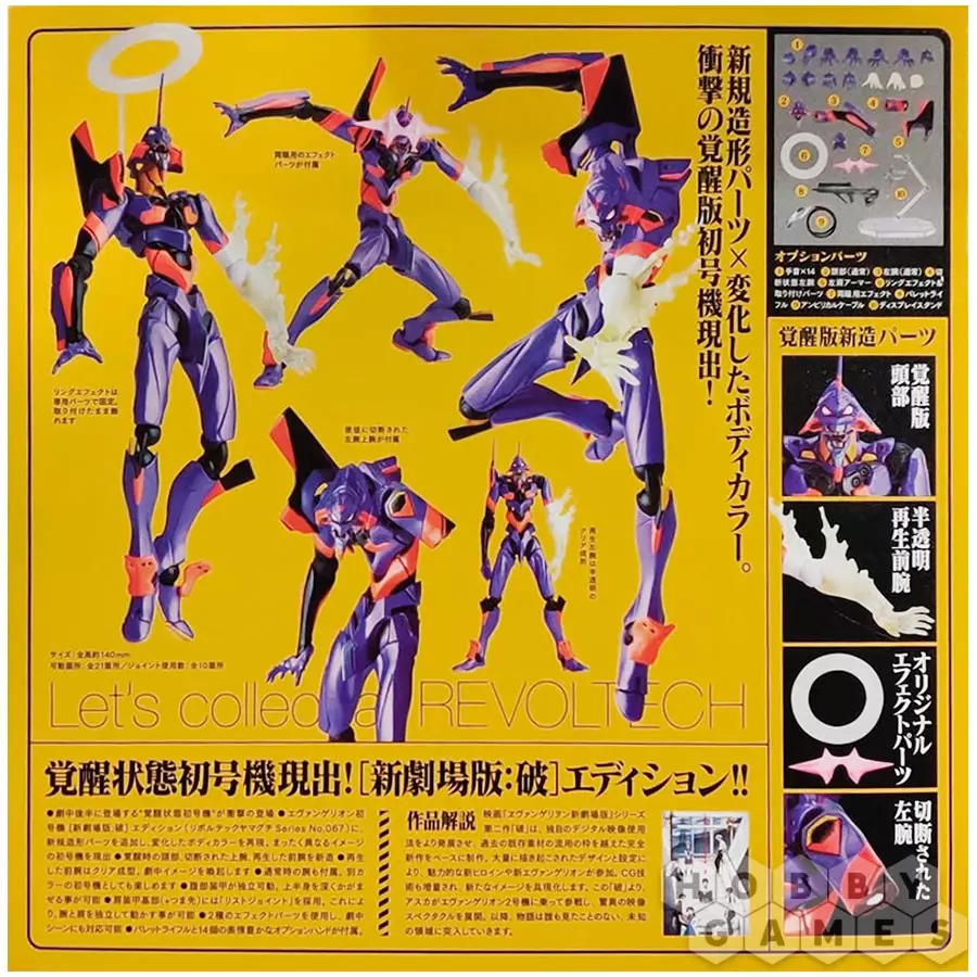 Перед вами стоит невероятная фигурка “Евы” управляемая одним из главных пилотов, Синдзи. Фигурка полностью отражает величие этого необычного существа, превосходящего наше понимание. Фигурка подвижная и детализированная, к тому же в комплекте идут сменные детали для воссоздания любимых сцен. Ваши возможности ограничены только вашим воображением – робот может принимать практически любые позы, которые придут вам в голову!