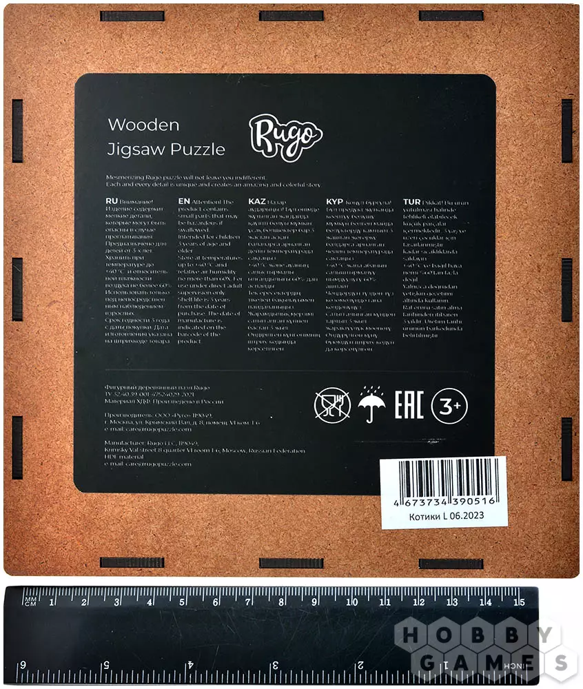 В небольшой коробке вы найдёте деревянные элементы, складывающиеся в изображение забавной картинки. Это уникальные пазлы, которые сохраняют естественный запах дерева, сделаны методом прямой экопечати. Фигурные детали делают процесс игры интереснее, так как они, несмотря на то, что являются частью целого, становятся самодостаточными элементами, которые любопытно разглядывать по отдельности.