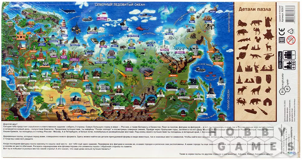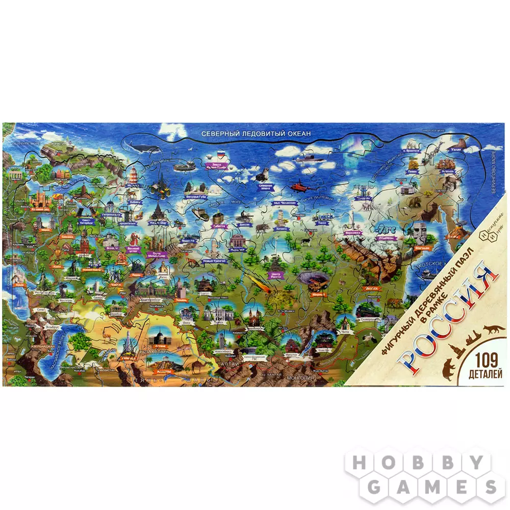 Деревянные элементы этого пазла складываются в изображение одной из стран мира. Это уникальные пазлы, которые сохраняют естественный запах дерева, сделаны методом прямой экопечати. Фигурные детали делают процесс игры интереснее, так как они, несмотря на то, что являются частью целого, становятся самодостаточными элементами, которые любопытно разглядывать по отдельности.