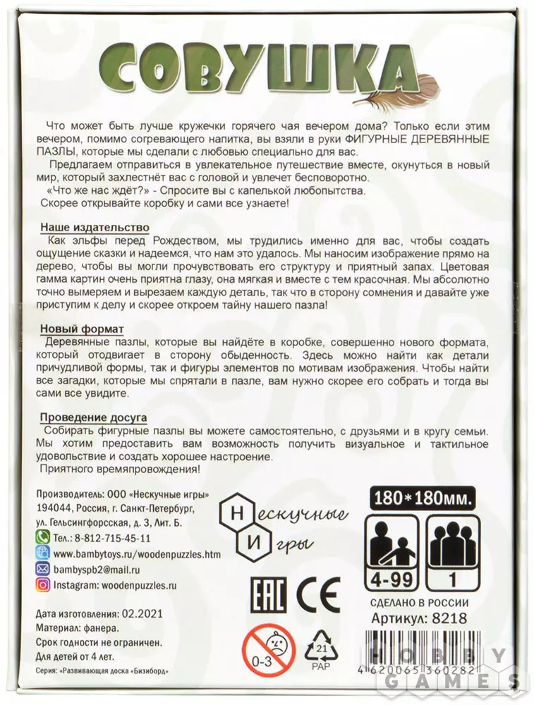Вопросы про Фигурный деревянный пазл "Совушка"