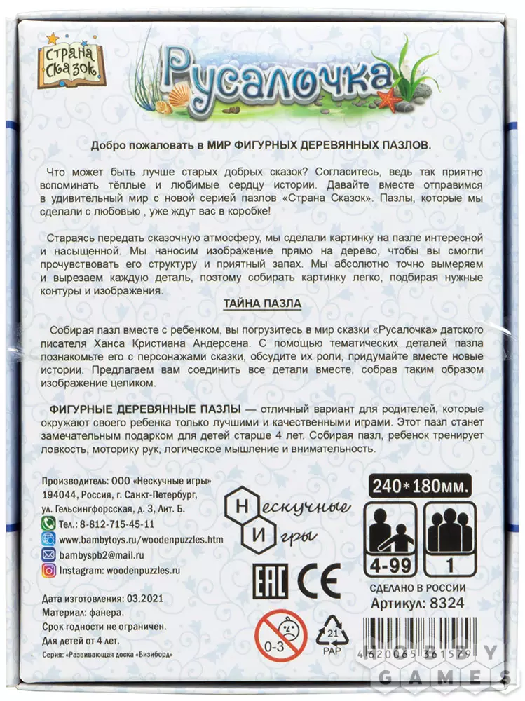 В небольшой коробке из серии "Страна сказок" вы найдёте деревянные элементы, складывающиеся в изображение одной из любимых с детства сказок. Перед вами уникальные пазлы, которые сохраняют естественный запах дерева и сделаны методом прямой экопечати. Фигурные детали делают процесс игры интереснее, так как они, несмотря на то, что являются частью целого, становятся самодостаточными элементами, которые любопытно разглядывать по отдельности.