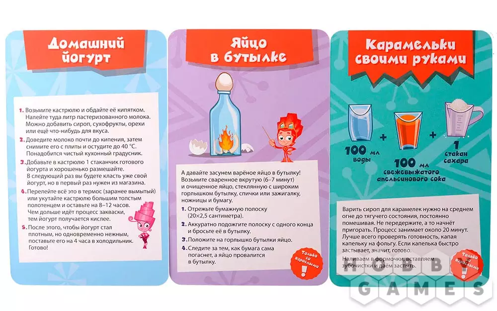 Также игра предлагает взрослым и детям провести вместе несколько полезных и познавательных опытов и приготовить несколько вкусных блюд собственными руками. Переместите варёное яйцо внутрь стеклянной бутылки, приготовьте домашний йогурт, понаблюдайте за шипением цветного льда и отправьте в полёт чайные пакетики! Все эксперименты наверняка придутся по вкусу юным пытливым умам, и вы ещё не раз вернётесь к этим увлекательным опытам!