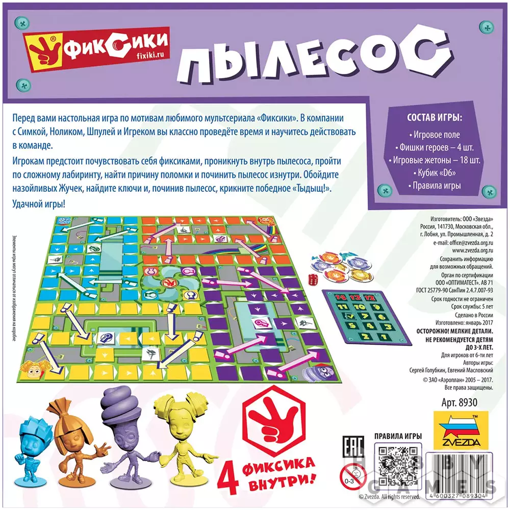 "Фиксики: Пылесос" – это динамичная настольная игра-бродилка, где каждый игрок станет одним из любимых героев мультсериала. В режиме "Кто быстрее?" вам предстоит соревноваться друг с другом, собирая ключи и стараясь первым добраться до мотора, а в режиме "Ну-ка, дружно!" – объединить силы, чтобы починить пылесос за ограниченное число ходов. Игра отлично подходит для детей и взрослых, развивает стратегическое мышление и учит работать в команде, а знакомые персонажи делают процесс ещё увлекательнее.