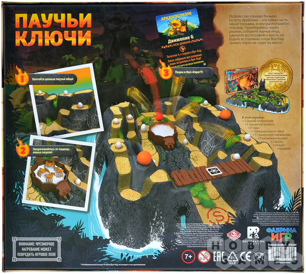 "Fireball Island: Паучьи Ключи" – это дополнение, которое привнесёт в вашу игру ещё больше приключений и непредсказуемости! Теперь ваш остров стал ещё больше и загадочнее, расширившись за счёт новых локаций и уникальных возможностей. Пройдя через таинственные пещеры, вы откроете для себя новые уголки острова, а может быть, и некоторые секреты его прошлого.