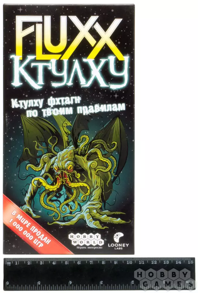 Настольная игра "Fluxx: Ктулху" – лучший способ ощутить новые грани безысходности и одолеть её. Тянем карту, играем карту, охотимся на шогготов среди Хребтов безумия и творим Знаки Древних… Но помните, Fluxx – игра об изменениях, а ничто не изменчиво так, как Древние Боги, их гнев и благосклонность!