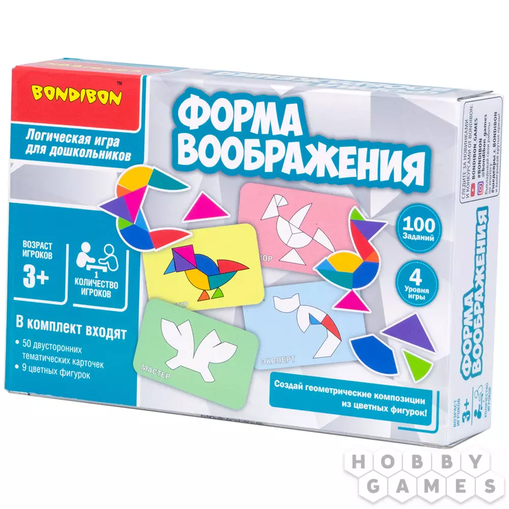 Головоломка "Форма воображения" – это танграм с заданиями, в комплекте присутствует 50 карточек со ста заданиями по сборке различных фигур. Задания отличаются друг от друга по уровню сложности. Игра-головоломка помогает ребёнку развивать мелкую моторику, образное и логическое мышление, а ещё формирует понятие сочетаемости предметов.