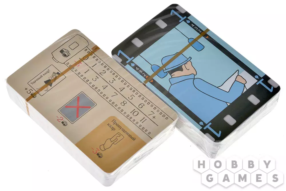 В настольной игре "Фотограф" игрокам предстоит запечатлеть кадры из жизни города. Перемешайте карты кадров и выложите их на стол согласно раскадровке (то есть, памятке). В начале игры каждый участник набирает на руку до 5 карт кадров, при этом он их сохраняет в том порядке, в котором взял (первая взятая карта должна быть крайней левой). После этого, начиная с первого игрока, все по очереди выполняют 4 действия: выбирают сюжет (берут на руку от 1 до 3 карт), перематывают плёнку (перемещают 1 карту в руке), фотографируют (разыгрывают от 1 до 3 карт) и проверяют раскадровку (выкладывают новые карты).