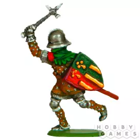 Пехотинцы носили практичные бригантные доспехи из металлических пластин, нашитых на тканевую основу, и защищали голову либо бацинетами, либо шапелями. Также они были снабжены различными щитами.