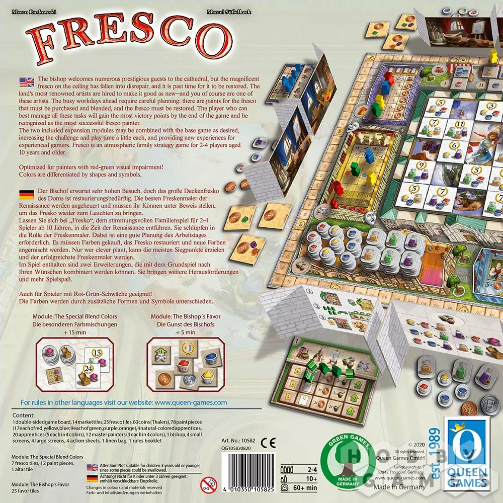 Ваша цель – не просто рисовать, а создавать настоящие произведения искусства! В процессе игры вам предстоит покупать краски, смешивать их, работать над фреской, зарабатывать деньги и привлекать учеников к важнейшим задачам. Вы будете выбирать и смешивать краски с умом, подготавливая идеальные оттенки для фрагментов фрески, а также опережать соперников в искусном сочетании материалов.