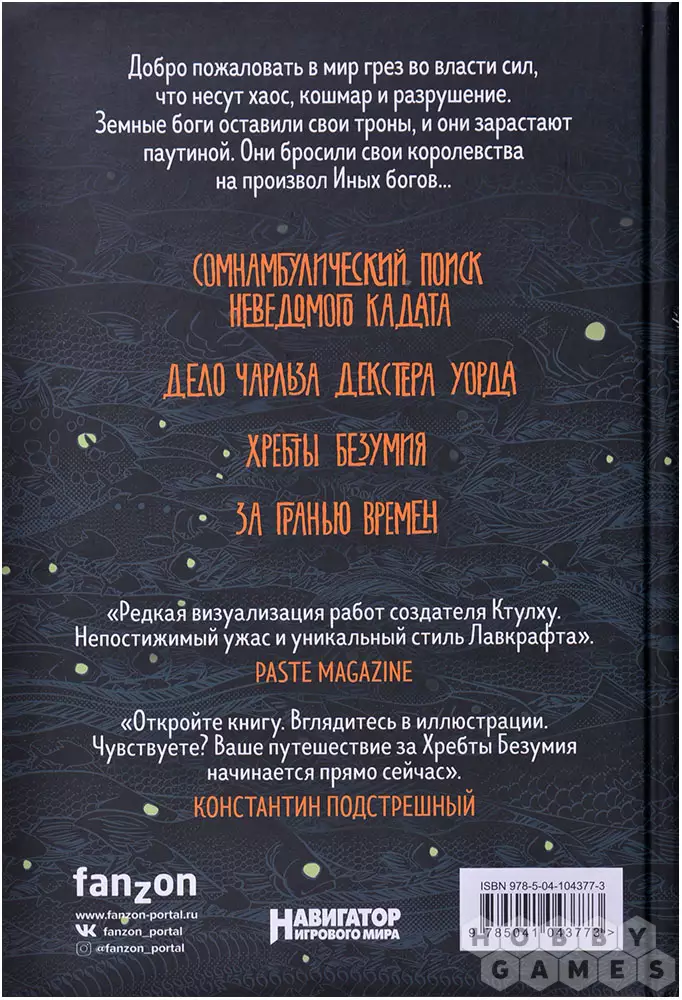 Данная книга – сборник графических романов, основанных на наиболее ярких работах Лавкрафта. Под обложкой вы найдёте адаптации двух повестей – "Сомнамбулический поиск неведомого Кадата" и "За гранью времён", и двух романов – "Хребты безумия" и "Случай Чарльза Декстера Варда".