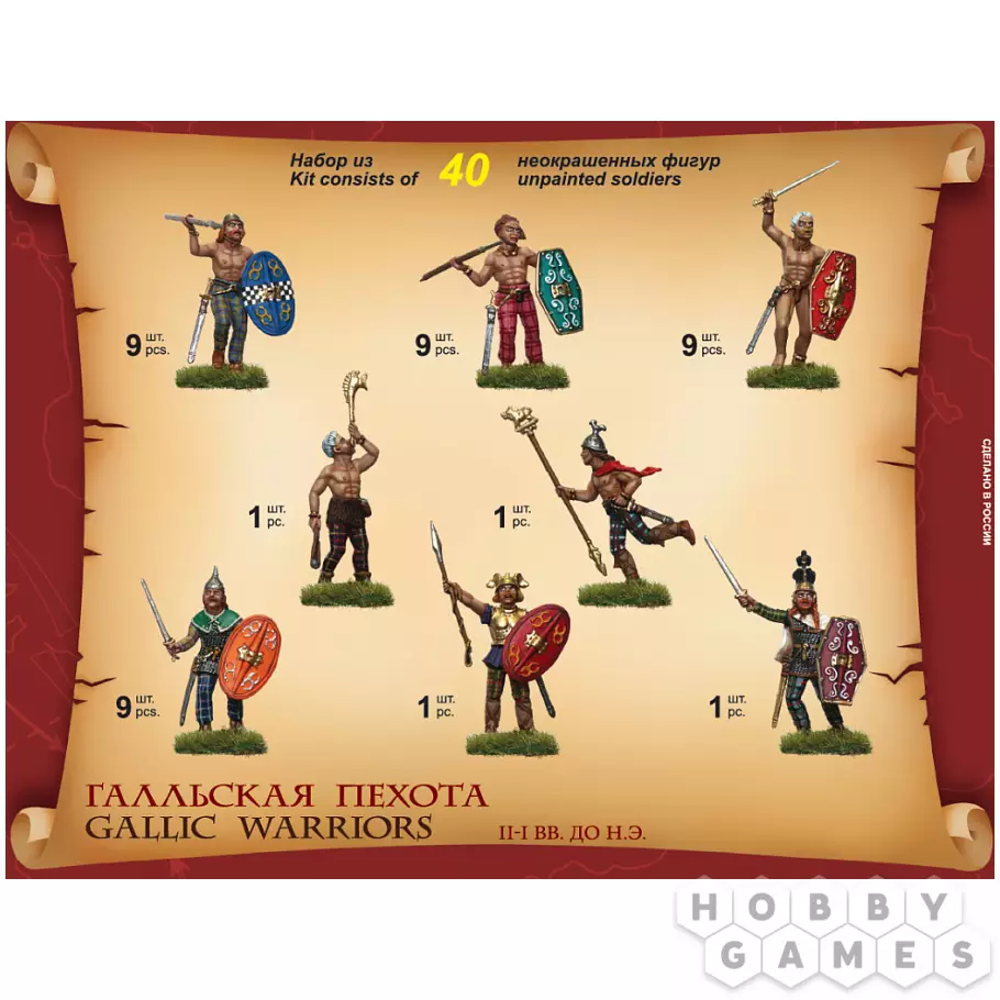 Галльские воины, прославившиеся своей яростью в бою, были грозной силой, с которой столкнулся сам Юлий Цезарь во время завоевания Галлии. Эти высокие, светловолосые бойцы наводили ужас на противников своей неукротимой храбростью. Вооружённые длинными обоюдоострыми мечами – спатами, бронзовыми или железными шлемами причудливых форм с рогами или гребнями, а также овальными щитами, они бросались в бой с громкими криками, деморализуя врага ещё до начала схватки.