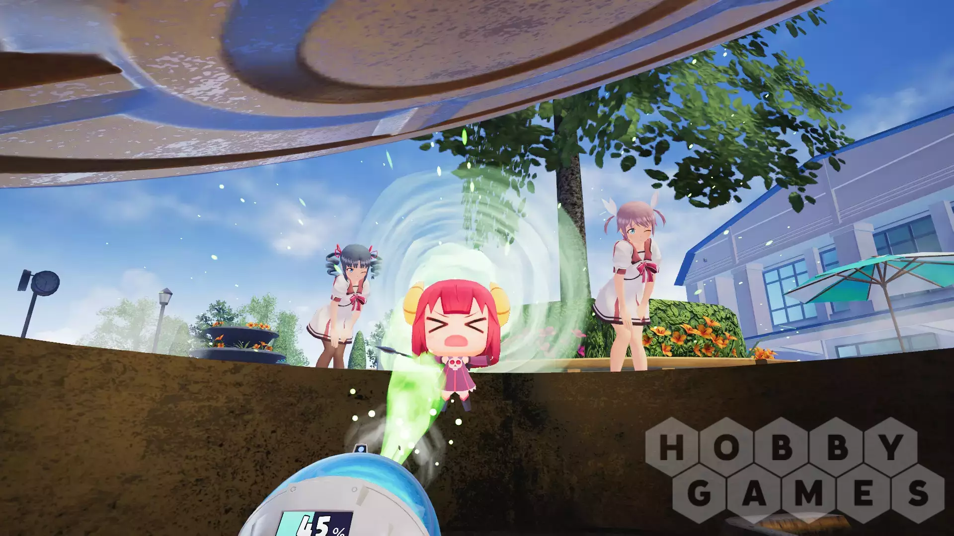 Equip the awesome Demon Sweeper gadget, capable of sucking up Gal*Gun 2's pesky demon menaces… and perhaps some clothing too!