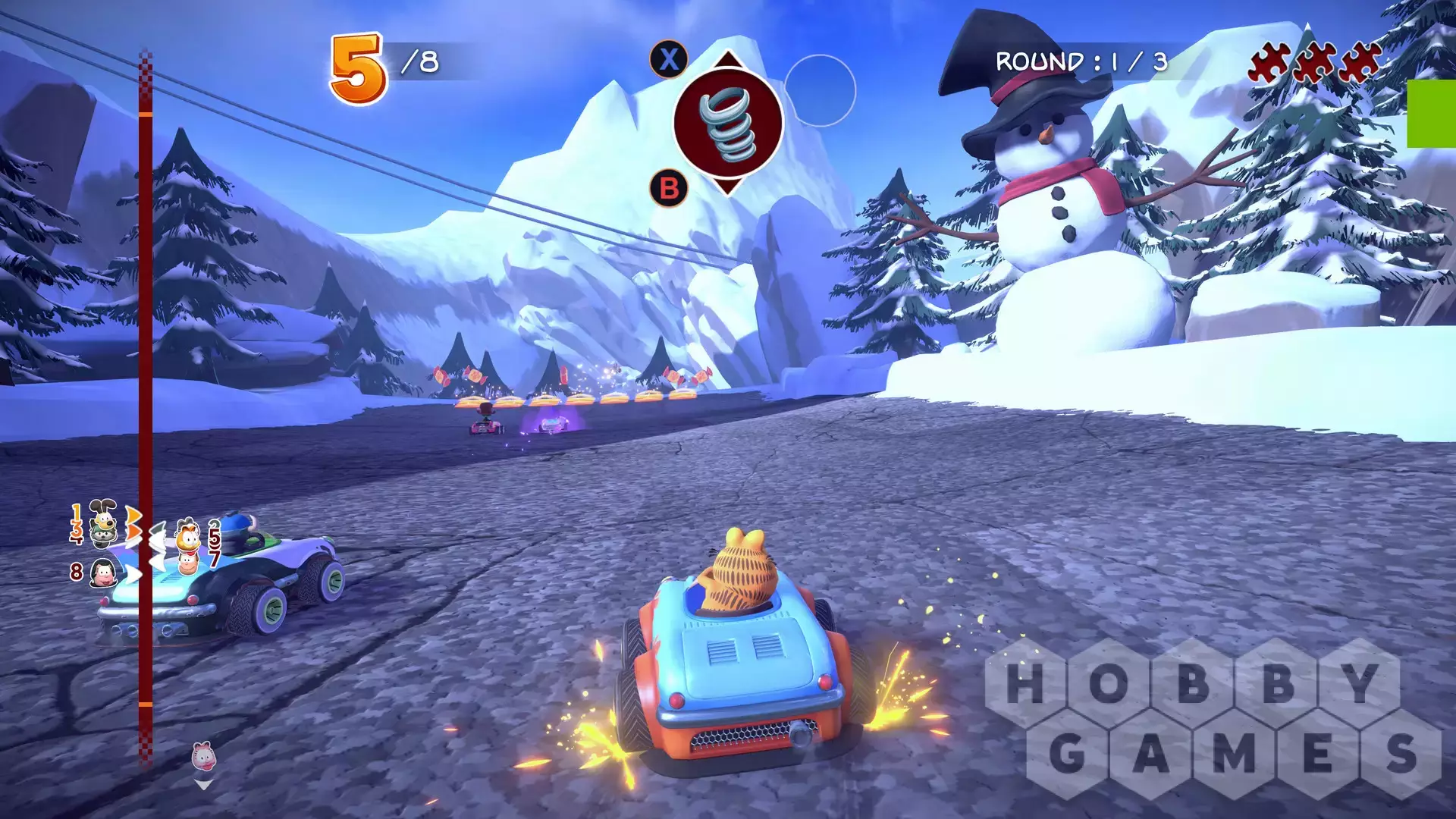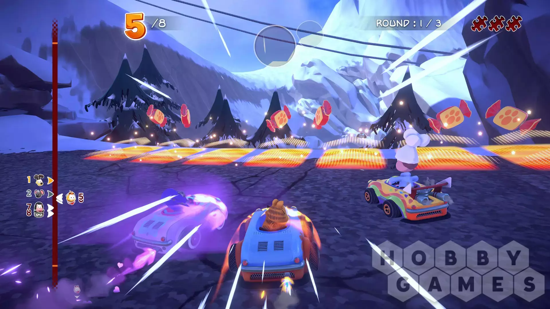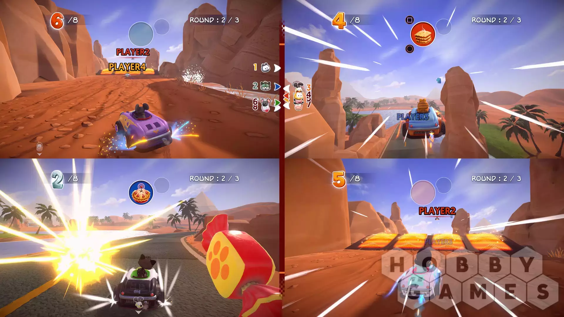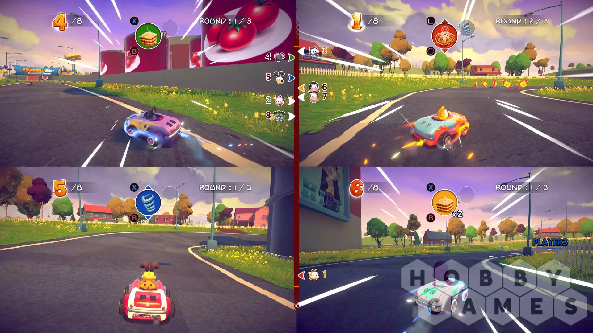 - 16 CIRCUITS: Crazy races in stunning environments inspired by the world of Garfield, such as Palerock Lake and Pastacosi Factory