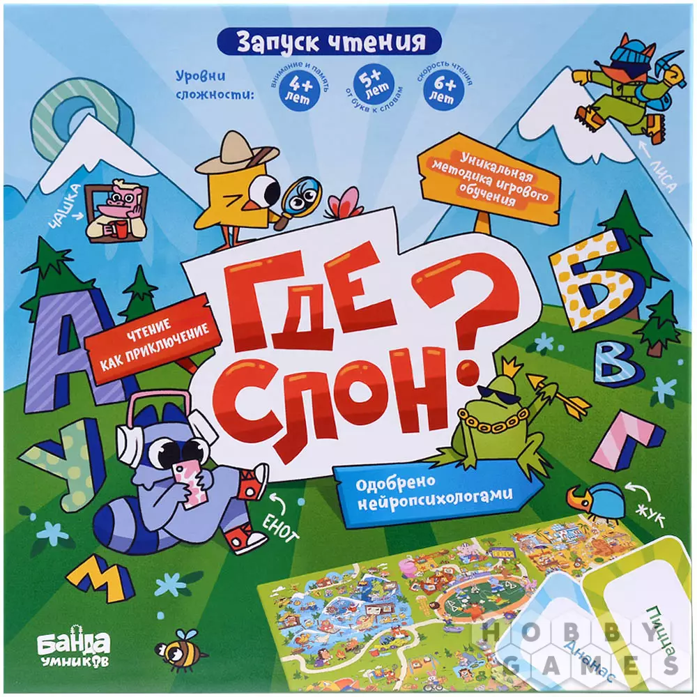 Книга – всему голова! А совсем малыши могут начать не с книжек, всё-таки это дело для них пока слишком сложное, а с карточек – этого вполне достаточно для того, чтобы практиковать и развивать навыки чтения. Карточная игра для самых маленьких "Где слон?" как раз для этого и создана.