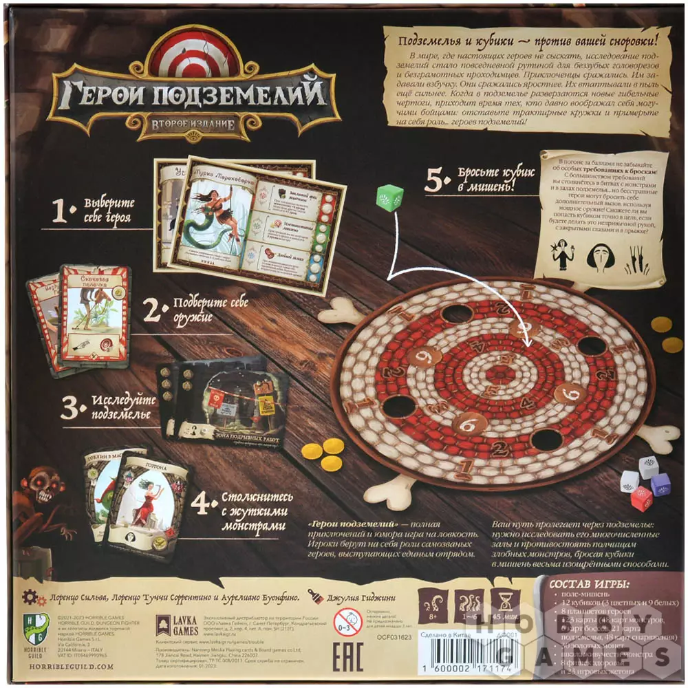 "Герои подземелий" – кооперативная игра, сочетающая в себе элементы серьёзных классических ролевых игр и простейшие механики дартса и твистера. Выбирайте своего недогероя, объединяйтесь с другими фриками в команду по спасению мира. С шумом и весельем врывайтесь в подземелье, преодолевайте препятствия, расправляйтесь с приспешниками тьмы и разрубите на много маленьких кусочков финального босса. Если справитесь со всеми поставленными задачами, то щедрая награда и самый помпезный титул не заставят себя ждать!