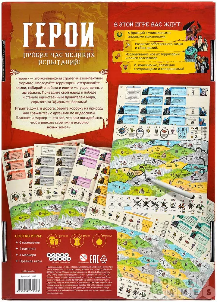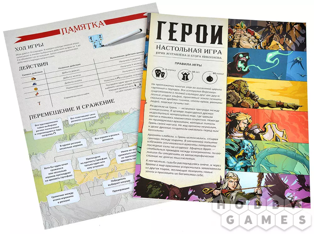 "Герои" – это комплексная стратегия в компактном формате, идеально подходящая для игры дома, в дороге и даже по видеозвонку. Вам понадобится всего лишь планшет и маркер, и вот ваше имя уже красуется среди великих завоевателей и правителей Эфирных Врат.