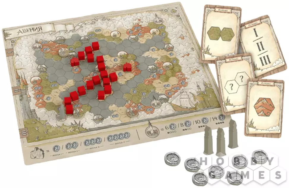 В настольной игре "Гильдия купцов-путешественников" вы будете покорять различные территории, от южных до северных, от пустынь до отвесных скал, и прокладывать выгодные торговые маршруты, открывая новые поселения и выполняя миссии. Всё – ради того, чтобы набрать как можно больше победных очков, то есть монет, и превознести славу и величие королевы Гикупу. На то, чтобы выделиться среди соперников и победить, у вас будет ровно 4 раунда. Успеете ли вы разжиться богатством и покорить её Величество своей самоотверженностью?