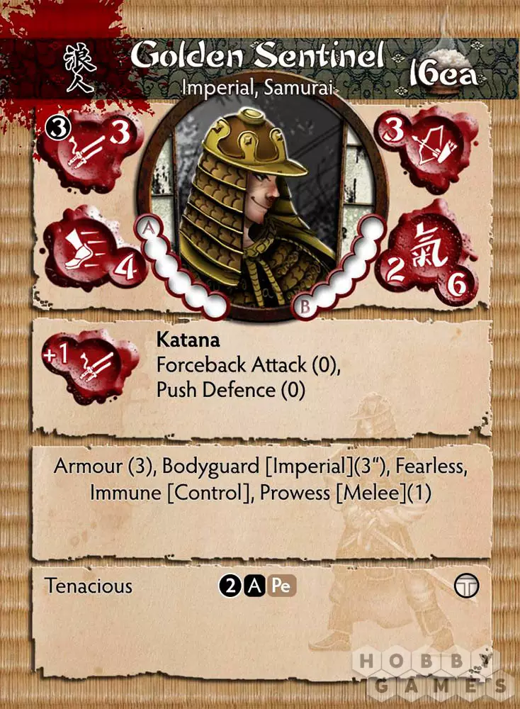 Golden Sentinels – телохранители клана Императора, охраняющие семью во время путешествий, отдыха дома и при дворе. Они также сопровождают его Teishin, путешествующего по его Империи, распространяя его святое слово. Если Teishin Имперского двора являются голосом Императора в далеких, более варварских землях, то Golden Sentinels служат его щитом. Все они проверенные воины, поклявшиеся защищать своих подопечных ценой своей жизни, если это необходимо. Однако размеры Golden Empire таковы, что выполнение имперских миссий часто может занять очень долгое время, и поэтому часто Sentinels могут иногда перенимать местные обычаи и в редких случаях ввязываться в конфликт в делах местных жителей.