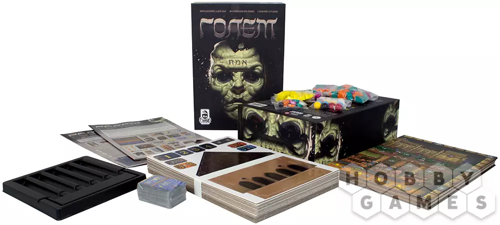 "Голем" – это комплексная настольная игра с немалым количеством различных механик. Вы отправитесь в Прагу XVI века, чтобы стать величайшим учёным своего времени. В вашем распоряжении стопки древних писаний и верные ученики, внимающие каждому слову. Выполняйте различные цепочки действий и получайте бонусы. Каждый шаг приносит победные очки, а чем шаги продуманнее, тем больше очков вы получите и станете более успешным учёным. Накопите необходимые знания и приобретите нужные артефакты, чтобы воссоздать труды раввина Лёва и сотворить собственного голема!