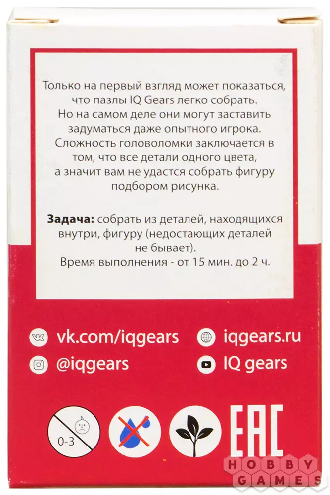 Крутите, вертите, складывайте – правильно сложенный IQ Gears выглядит без изъянов и в точности повторяет рисунок, указанный в задаче. Вам может показаться, что в головоломке недостаёт деталей, но это не так, попробуйте применить другой подход к решению задачи!