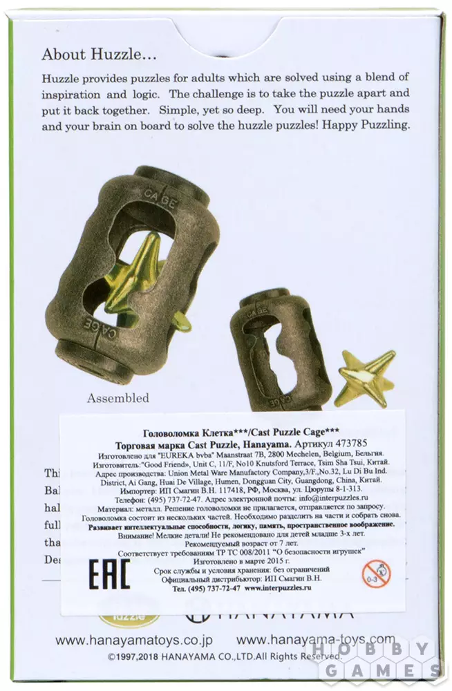 Линейка Huzzle Cast от японской компании Hanayama – это качественные металлические головоломки высокого уровня сложности, которые могут послужить отличным подарком как увлечённому фанату головоломок, так и просто человеку с пытливым умом. Чтобы решить головоломку, вам надо сначала разобрать её, а потом собрать. Причудливые формы и конструкции тщательно продуманы профессиональными создателями головоломок из стран всего мира и опираются на математические расчёты и законы физики.