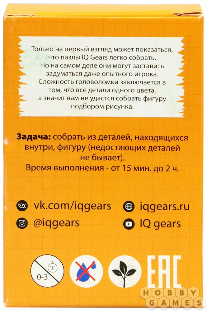 Крутите, вертите, складывайте – правильно сложенный IQ Gears выглядит без изъянов и в точности повторяет рисунок, указанный в задаче. Вам может показаться, что в головоломке недостаёт деталей, но это не так, попробуйте применить другой подход к решению задачи!