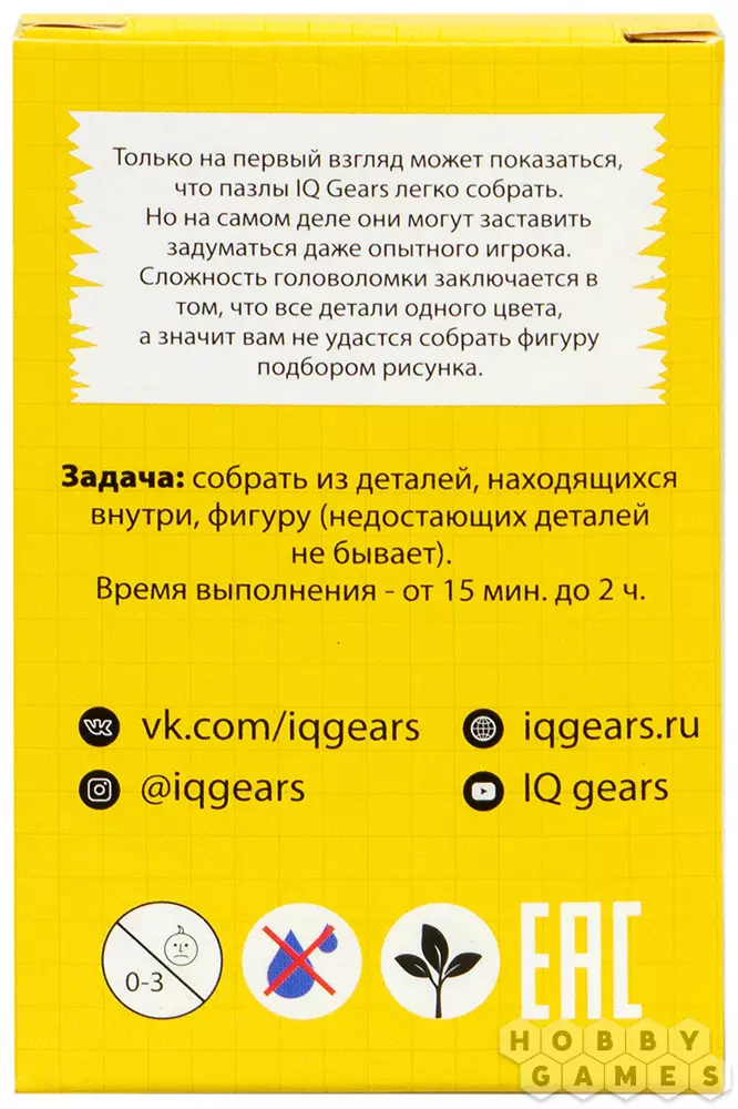 Крутите, вертите, складывайте – правильно сложенный IQ Gears выглядит без изъянов и в точности повторяет рисунок, указанный в задаче. Вам может показаться, что в головоломке недостаёт деталей, но это не так, попробуйте применить другой подход к решению задачи!