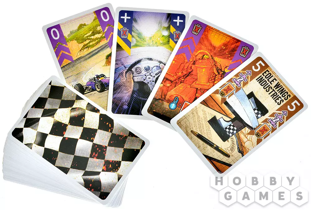 Выберите свой цвет и возьмите все компоненты этого цвета: болид, планшет игрока, переключатель скоростей, 12 карт скорости и 3 карты начальных улучшений. Дополнительно возьмите карты стресса и нагрева (их количество указано на карте трассы). Перемешайте полученные карты (кроме нагрева) и выложите составленную колоду в левую ячейку своего планшета, а карты нагрева в среднюю – это ячейка двигателя. Расположите болиды на игровом поле и возьмите из своей колоды 7 карт. Всё готово к гонке!
