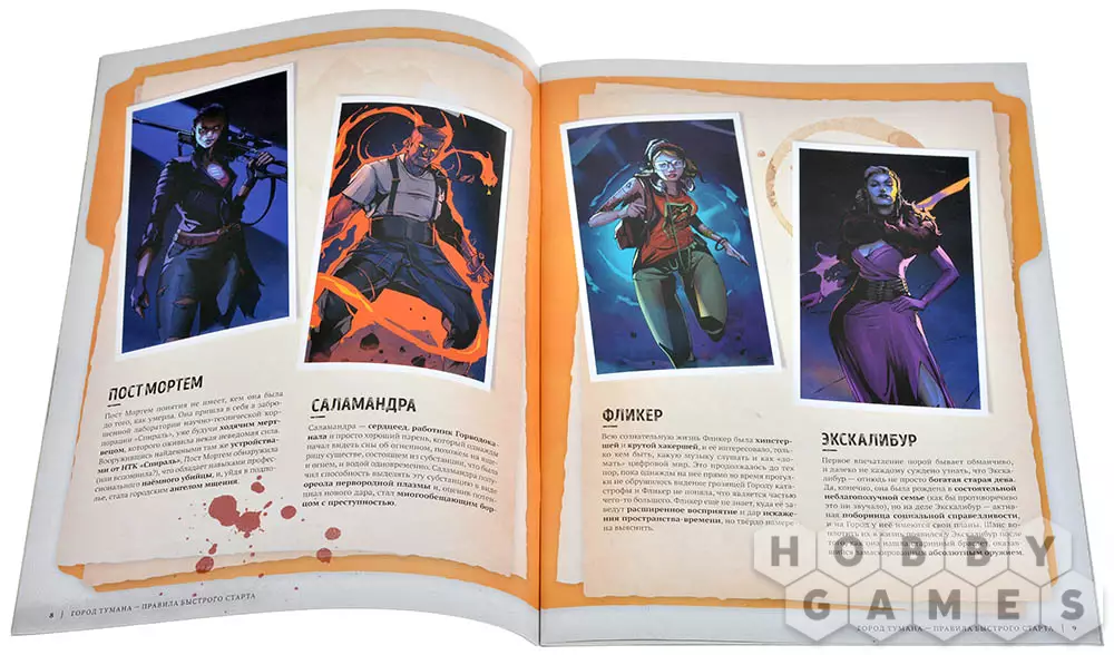 "Город Тумана. Быстрый старт" – это брошюра, которая введёт вас в игру, поведав основные правила обитания и поведения в Городе. Вы узнаете о мифосе и логосе, и найдёте ответы на ключевые вопросы о сеттинге. Это издание будет полезно как игрокам, которые хотят начать знакомство с новой вселенной и создать уникальных персонажей, так и ведущим (Мастерам церемоний), для того, чтобы придумать новые, наполненные опасностями приключения.