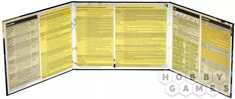 Ширма мастера церемоний – незаменимый аксессуар для проведения незабываемых игр. Снаружи ширмы – роскошная цветная иллюстрация Города и его жителей, которая погружает игроков в атмосферу таинственного мегаполиса. Внутри – основные правила, примеры меток и советы, которые помогут сделать игровой процесс по-настоящему увлекательным и превратить его в мистический нуарный детектив. Эта ширма станет вашим верным помощником, скрывающим все секреты и поддерживающим атмосферу игры на высоком уровне.