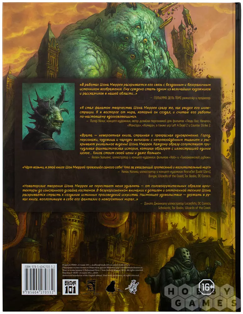 "Город Врат: Книга волшебников" – это качественно оформленный артбук, посвящённый миру, сошедшему с красочных и оригинальных рисунков Шона Мюррея. В городе, основанном магами, живут десятки и сотни необычных народов и рас. Магия питает Город Врат, подобно тому, как кровь питает мышцы и мозг. Однако Канцлер в своём стремлении к власти запрещает колдовать и безжалостно истребляет тех, кто ему противостоит. Волшебники отвечают сопротивлением! Узнайте больше о тех, кто осмелился бросить вызов власти, и о великих магах прошлого и их достижениях.