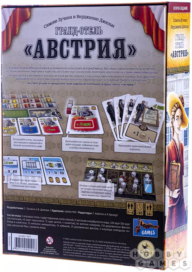 В этой увлекательной настольной игре вам предстоит превратить скромную гостиницу в настоящий рай для взыскательных гостей. Расширяйте и обустраивайте новые комнаты, чтобы принимать ещё больше посетителей и предугадывать любые их гастрономические желания. Чем выше уровень комфорта и сервиса, тем полнее ваши номера и успешнее бизнес – именно это позволит вашему отелю выйти на вершину популярности и благополучия.